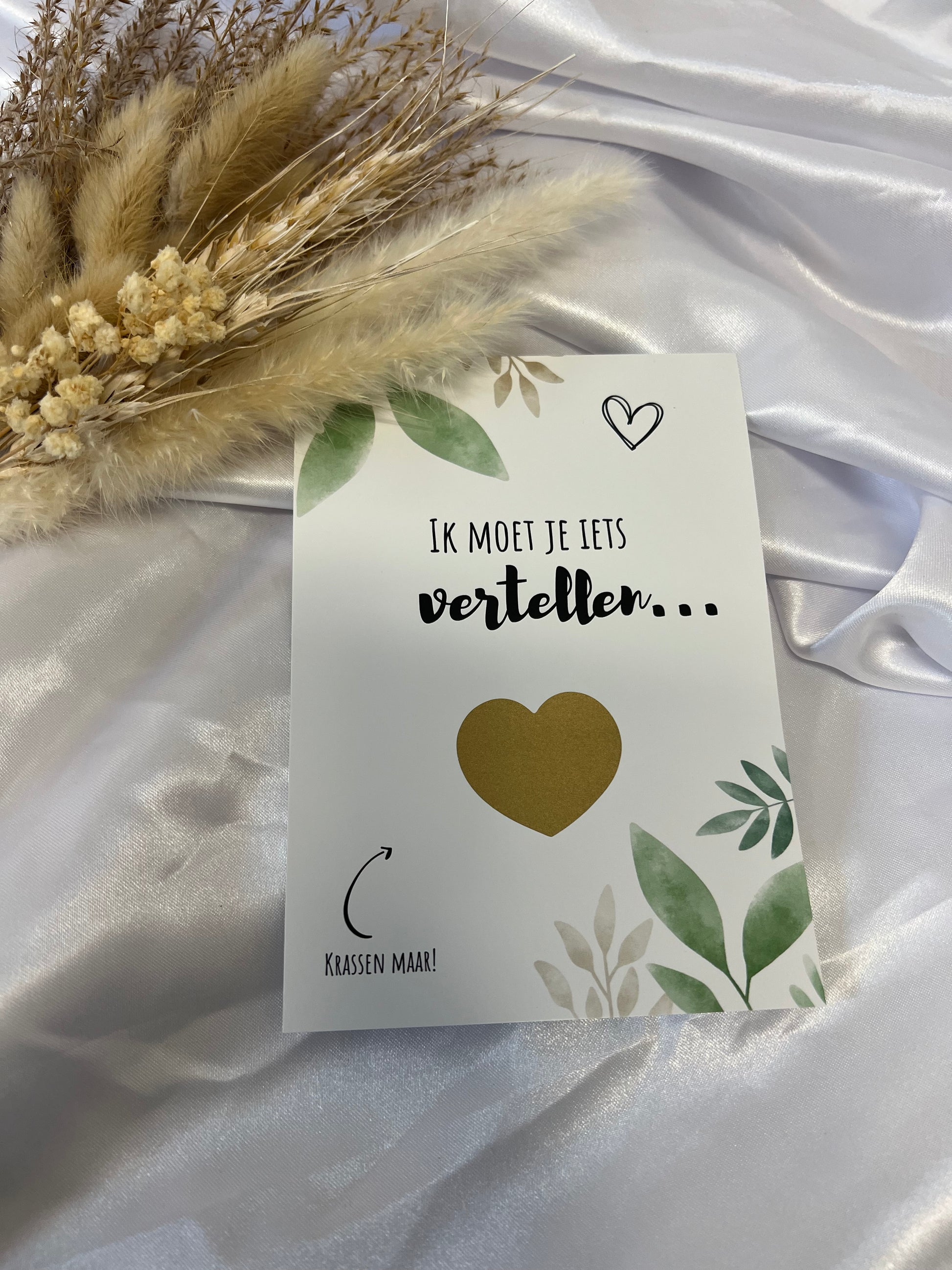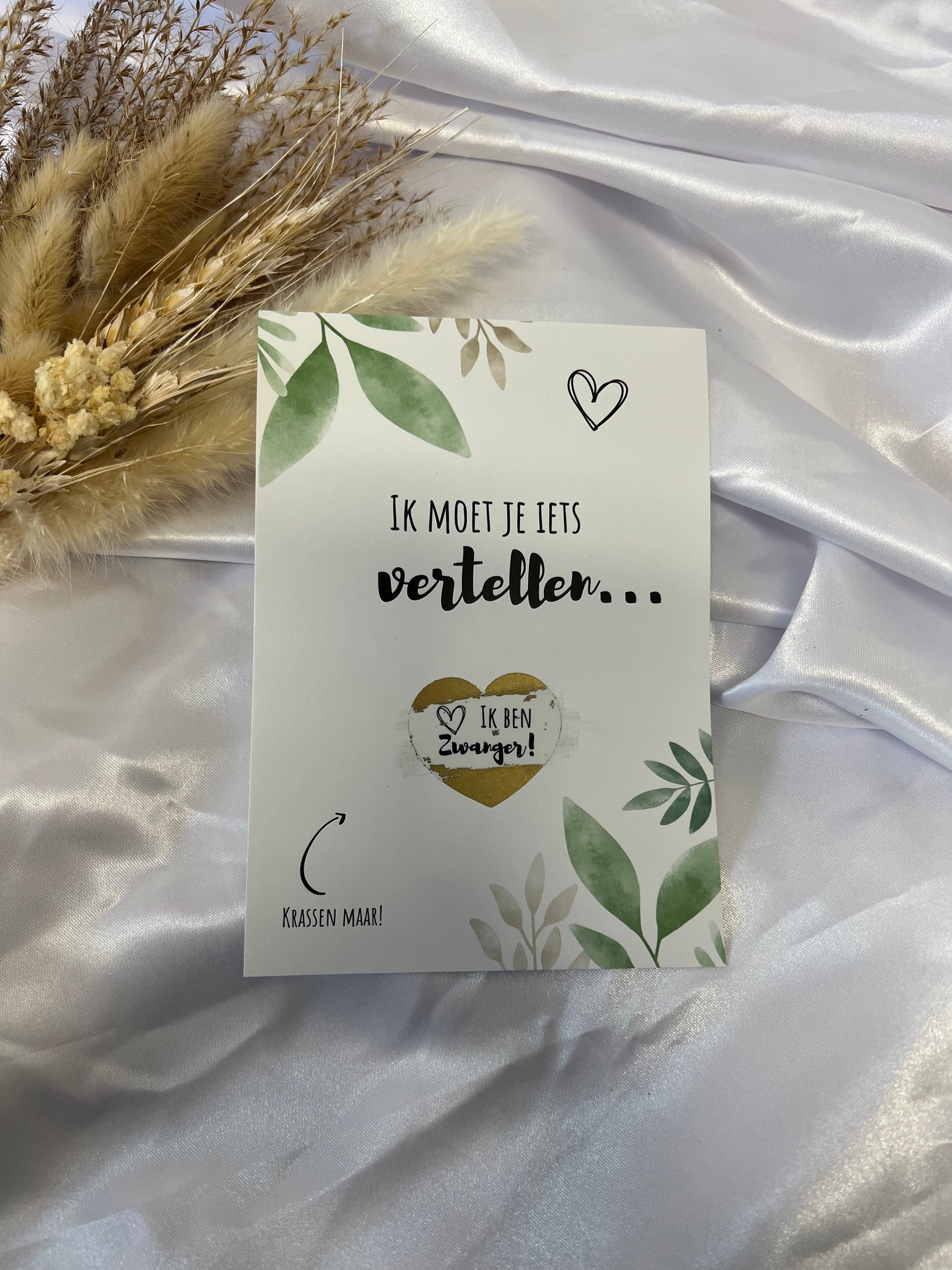 Ik moet je iets vertellen.. ik ben zwanger kaartje! Met behulp van deze kraskaarten kun je op een leuke manier aan je vrienden en familie vertellen dat je zwanger bent.