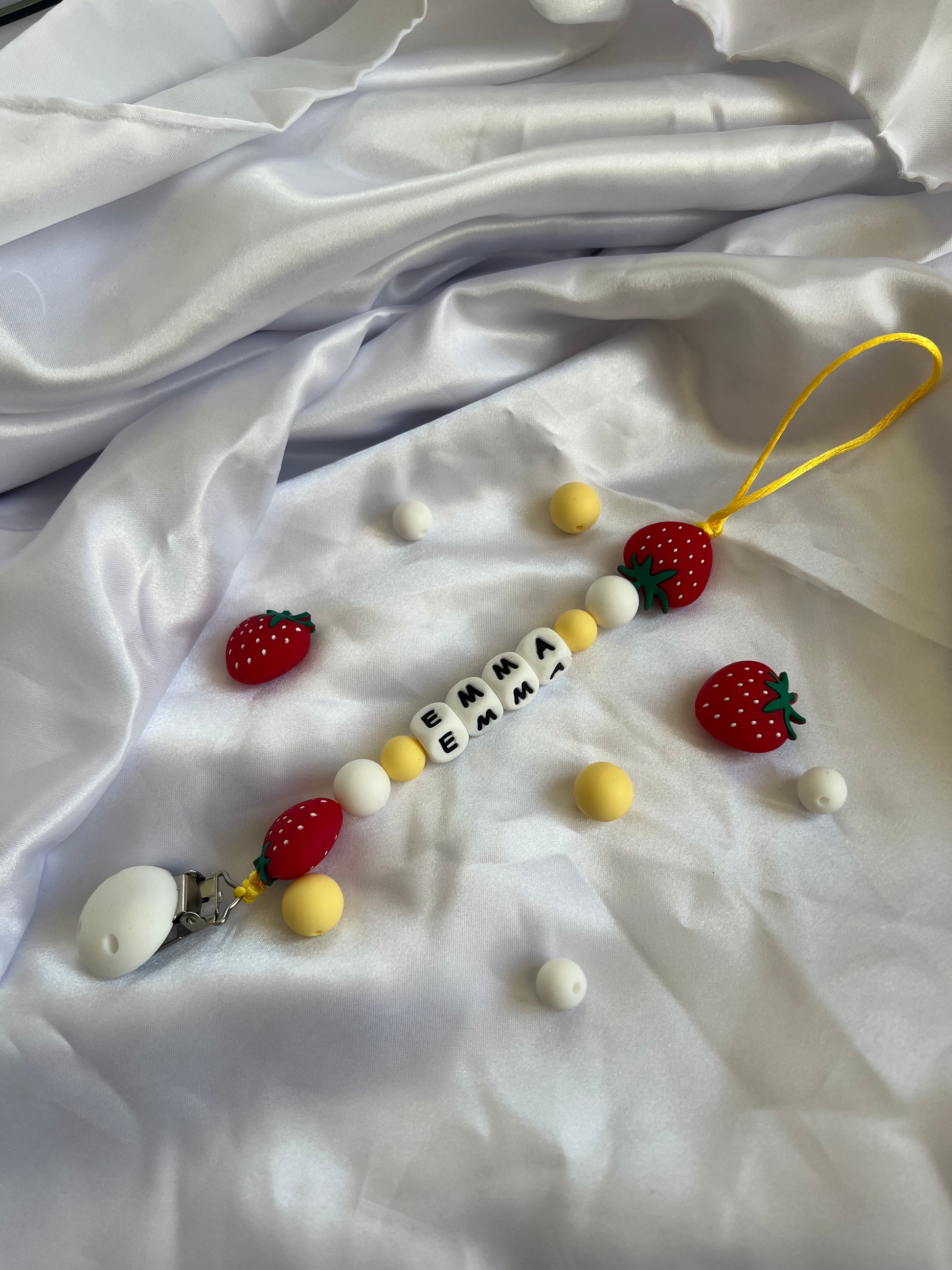 De naam die u op de speenkoord wilt, kunt u invullen bij; “ naam”. Wij zullen de speenkoord dan met de hand voor u maken.