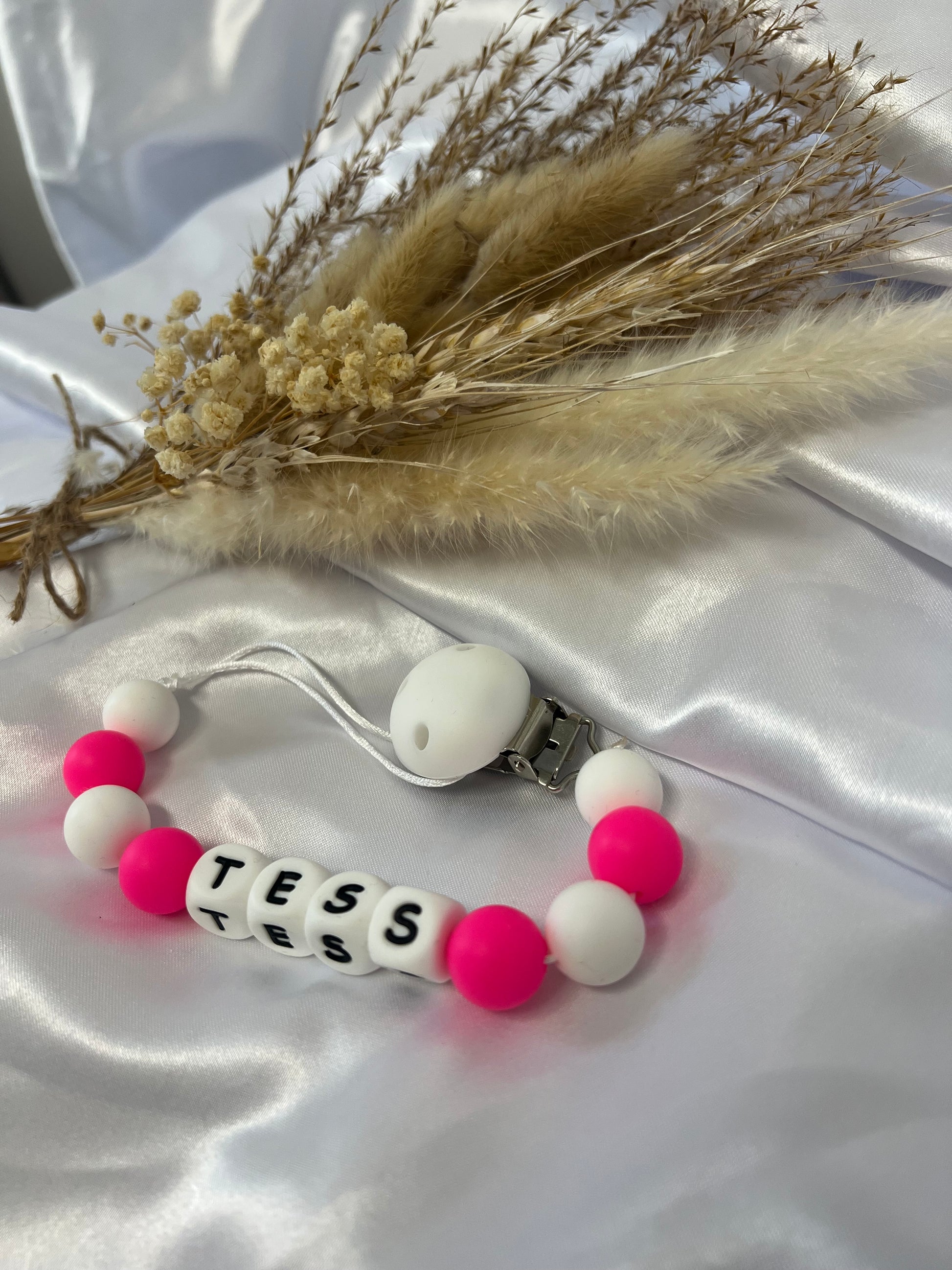 De naam die u op de speenkoord wilt, kunt u invullen bij; “ naam”. Wij zullen de speenkoord dan met de hand voor u maken.